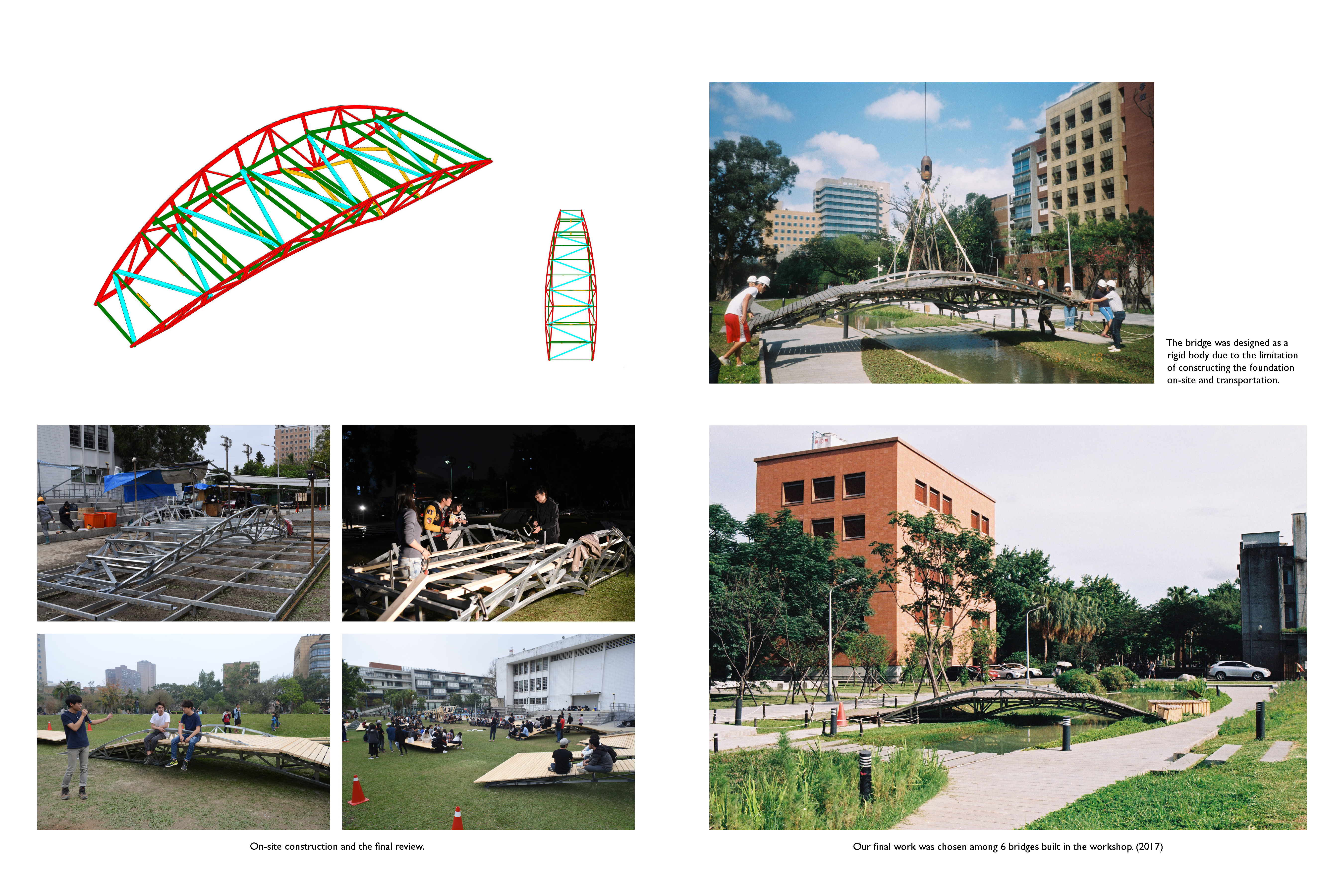 Usually, people go to the bridge is because they want to go over it. This project aims to make “go on the bridge” as a purpose. It is a place in the center of the campus for gathering, for people to stay.